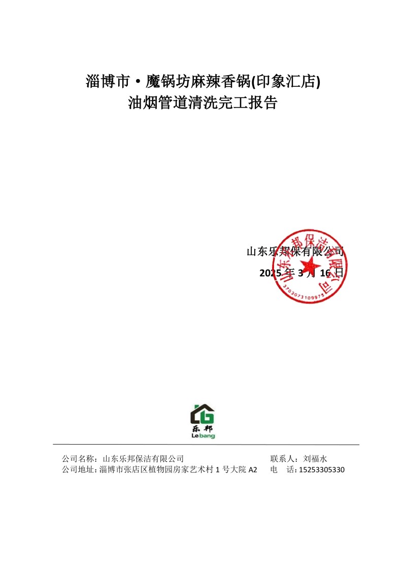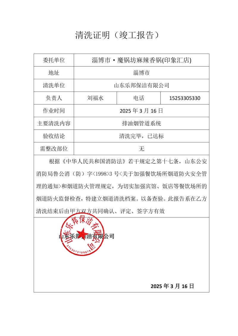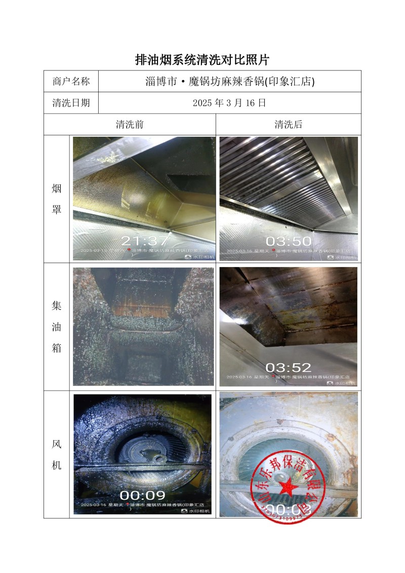 淄博市·魔鍋坊麻辣香鍋(印象匯店)清洗報(bào)告25.3.16