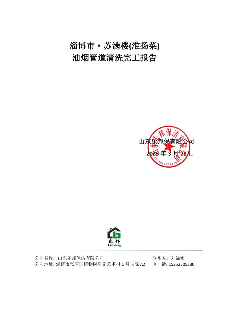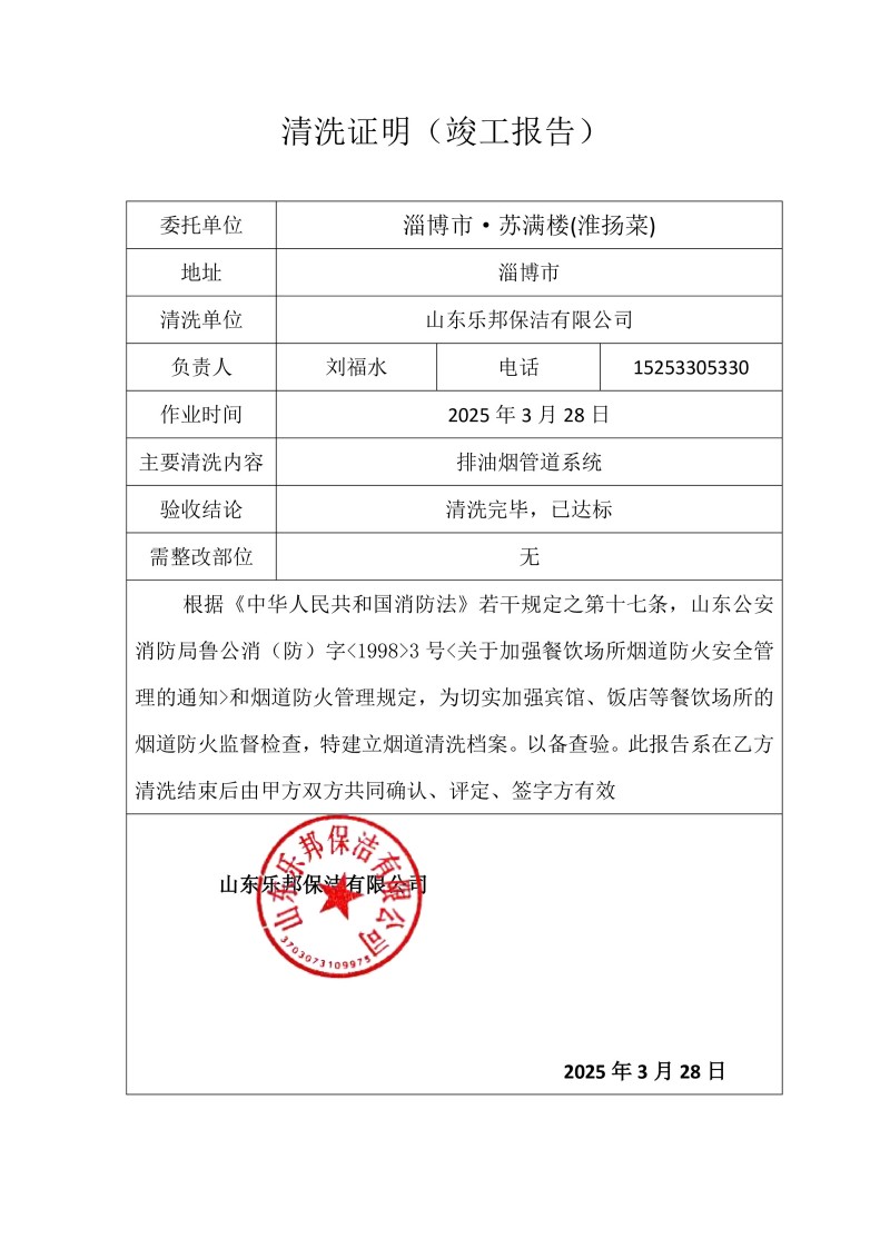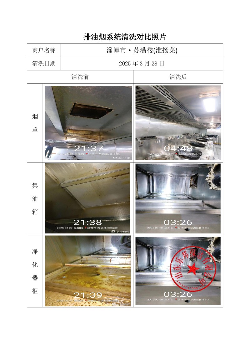 淄博市·蘇滿(mǎn)樓(淮揚(yáng)菜)清洗報(bào)告25.3.28