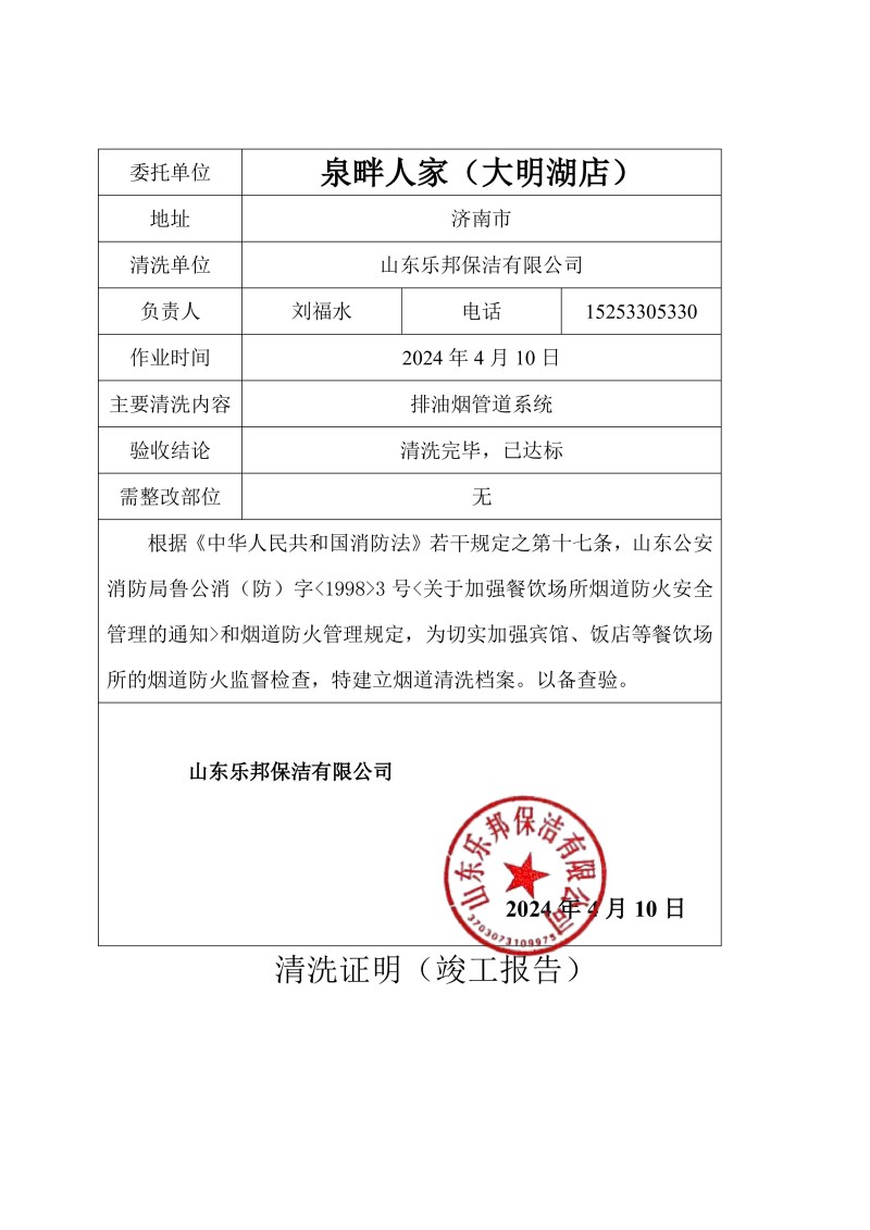 泉畔人家(大明湖店)清洗報(bào)告24.4.12