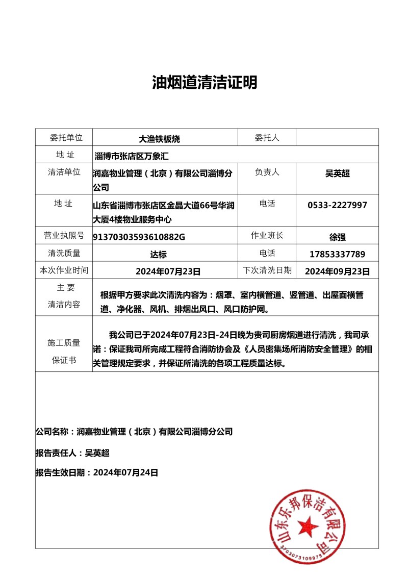 萬象匯大漁鐵板燒清洗報告25.3.16