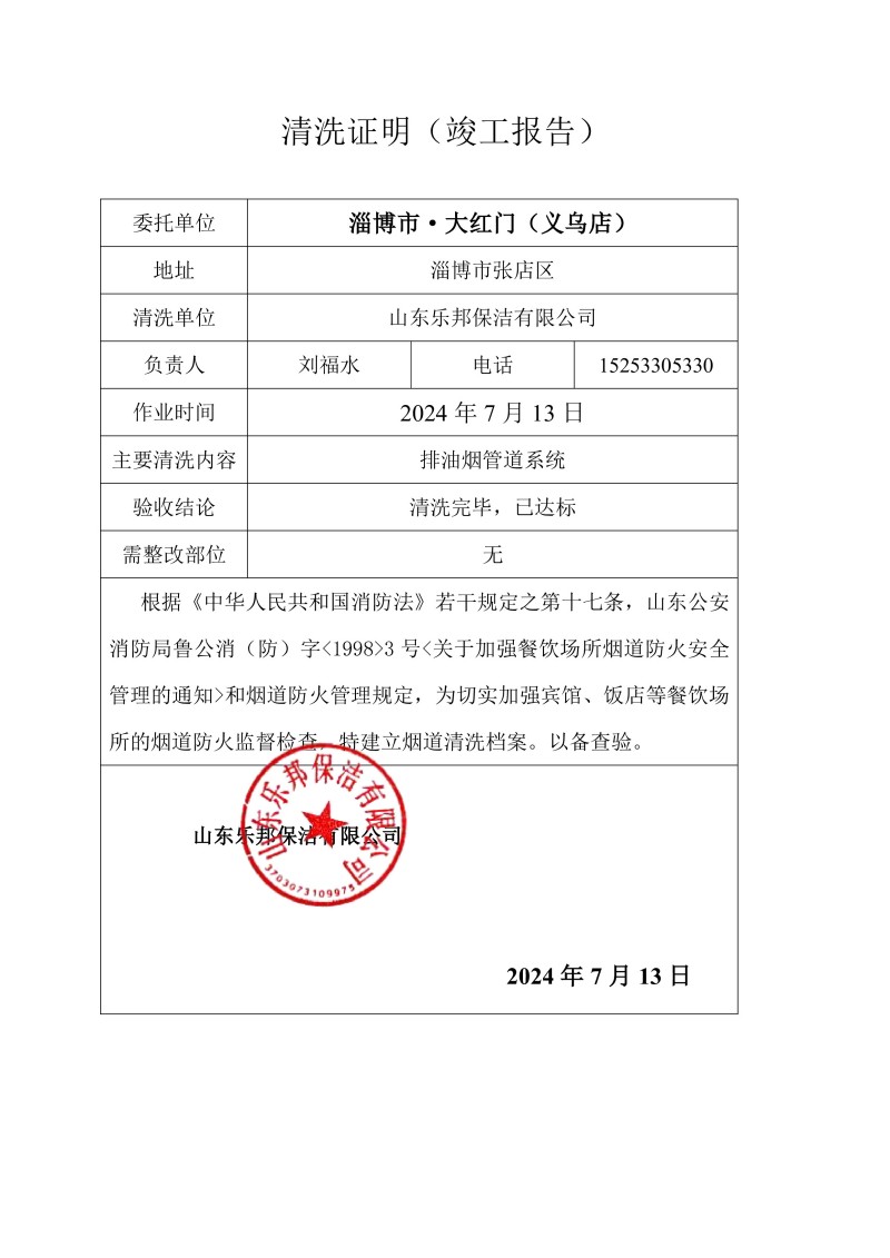 淄博市·大紅門(義烏店)清洗報告24.7.13