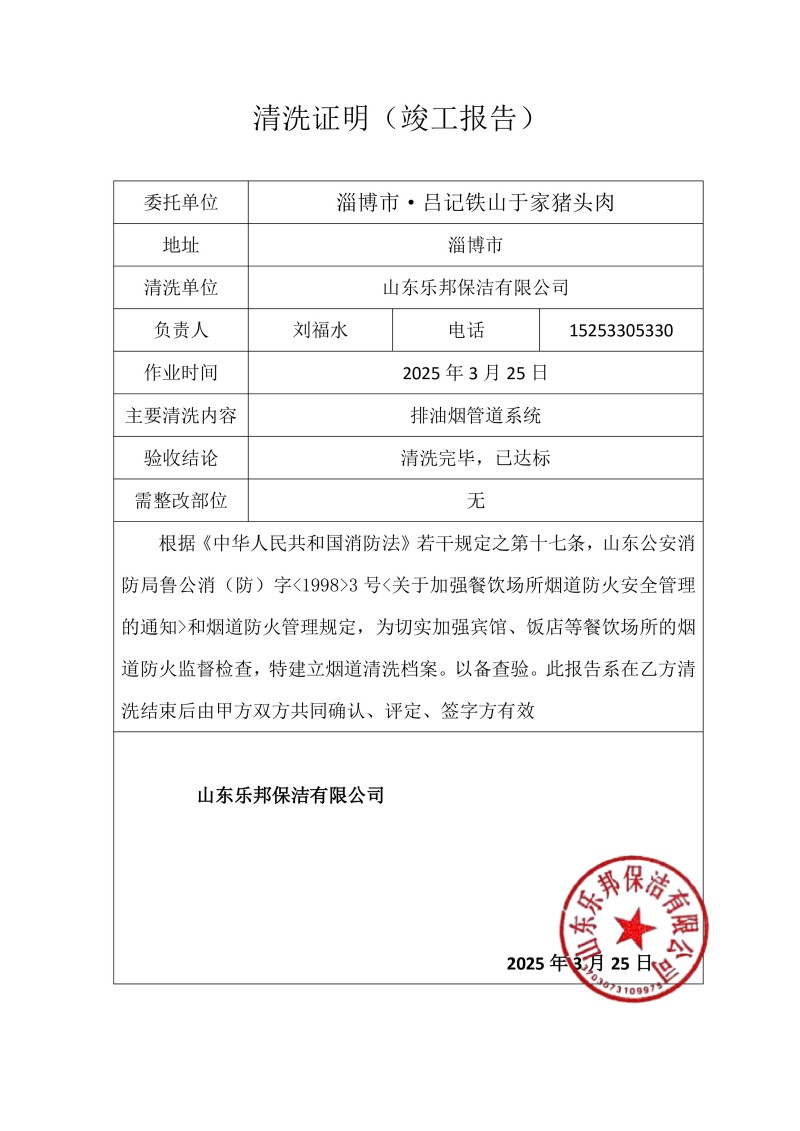 淄博市·呂記鐵山于家豬頭肉清洗報(bào)告25.3.25